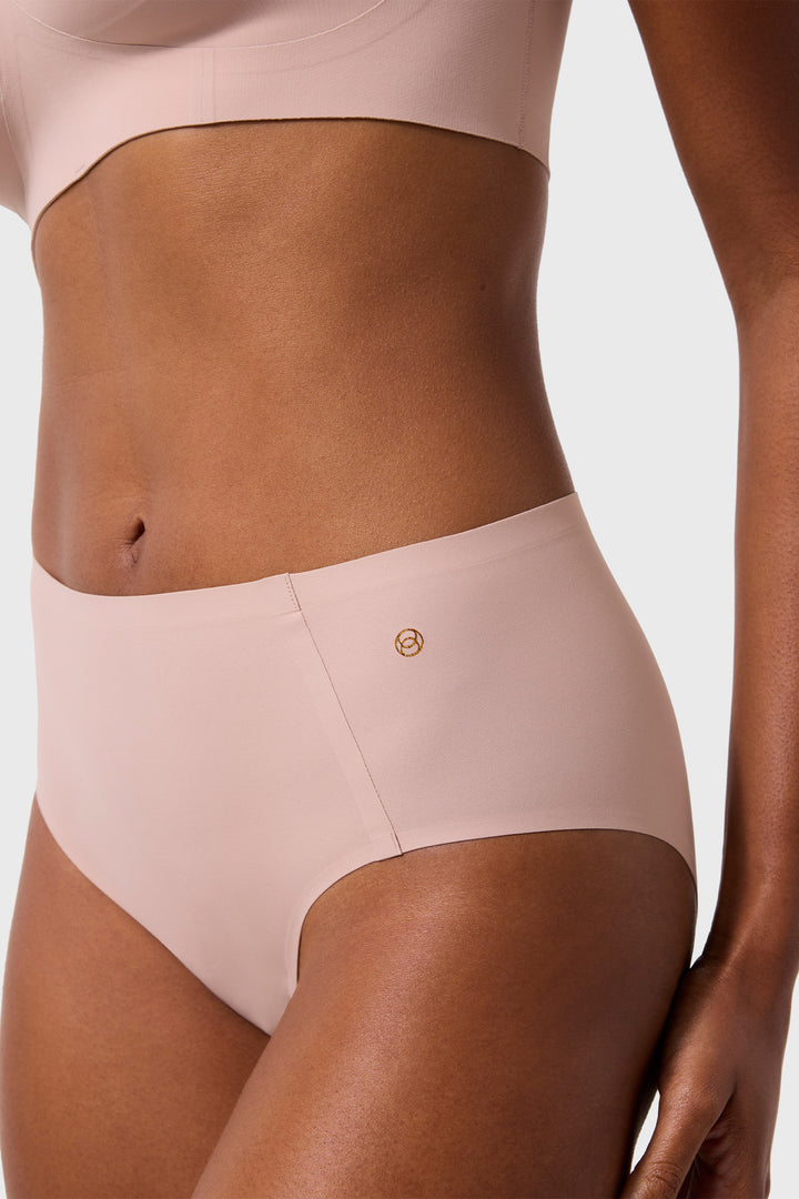 Full coverage meets cloud-soft comfort in the Evelyn & Bobbie High-Waisted Retro Bikini in Petal Drift. Designed with a smooth, high-rise silhouette, this everyday essential hugs your natural curves without digging, rolling or leaving marks. The seamless finish disappears under clothing, while the adaptive stretch fabric supports movement and breathability from morning to night. A perfect match to any Evelyn & Bobbie bra, it delivers easy comfort with a polished, feminine look.